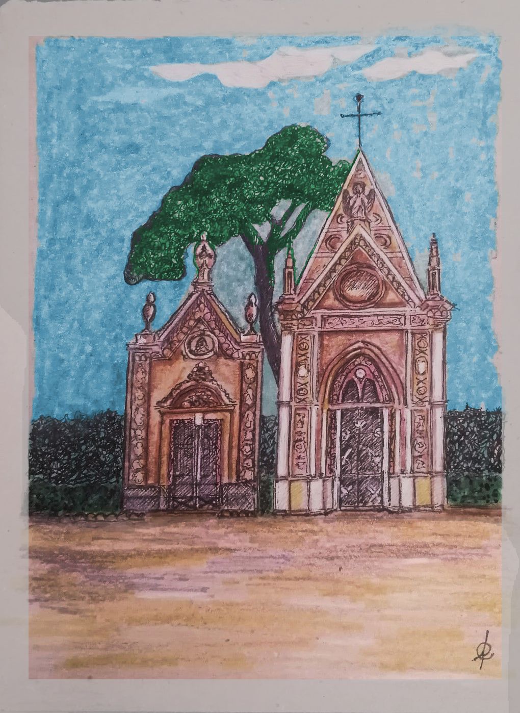Schizzo di uno scorcio del palazzo Gravina-Pace in Via Vittorio Emanuele a Caltagirone.